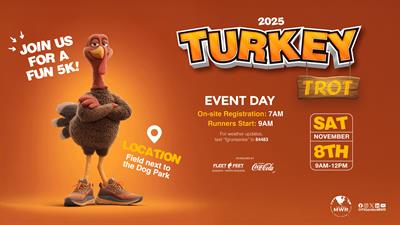 Wobble on over to the Turkey Trot 5K! Be sure to make it to the finish line before the other turkeys. Don’t worry about the pace – the 1K fun run and stroller walk is always an option for those gobblers and hens with little turkeys.